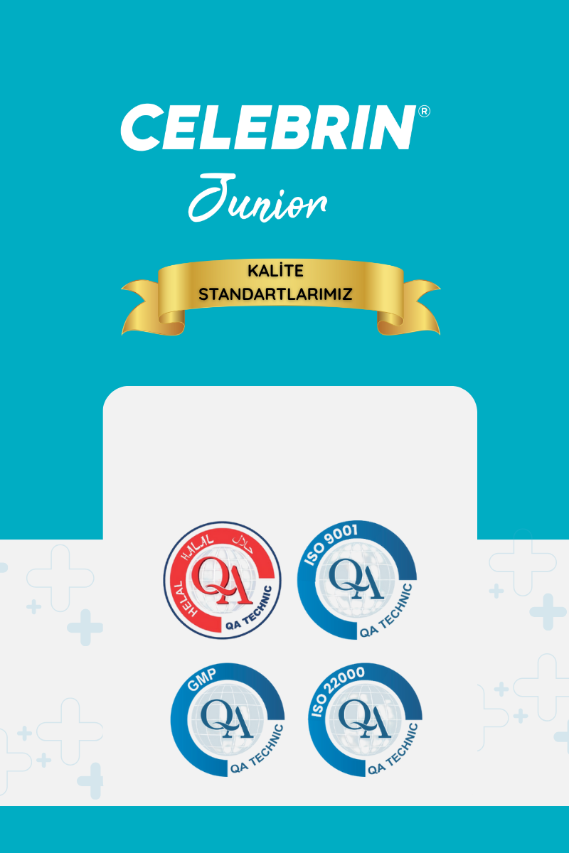 Neden Celebrin Junior Sıvı? FDA onaylı Sharp.PS® Green ve IFF teknolojisi ile çocuk gelişimini destekler. Sertifikalar kaliteyi garanti eder. Şeker/glüten içermez; ebeveynler için pratiktir.